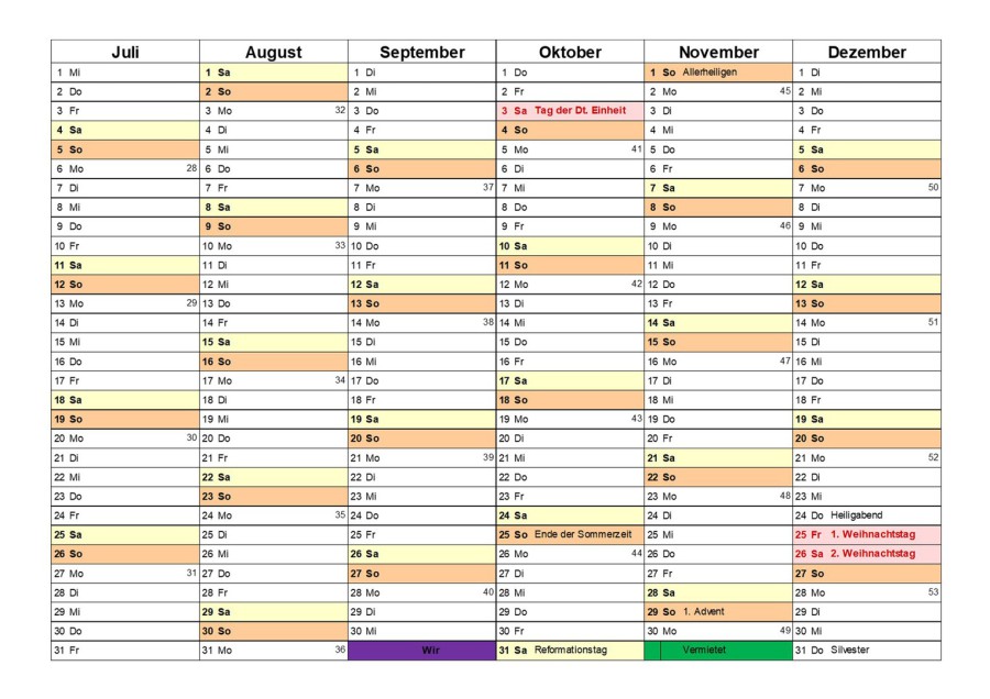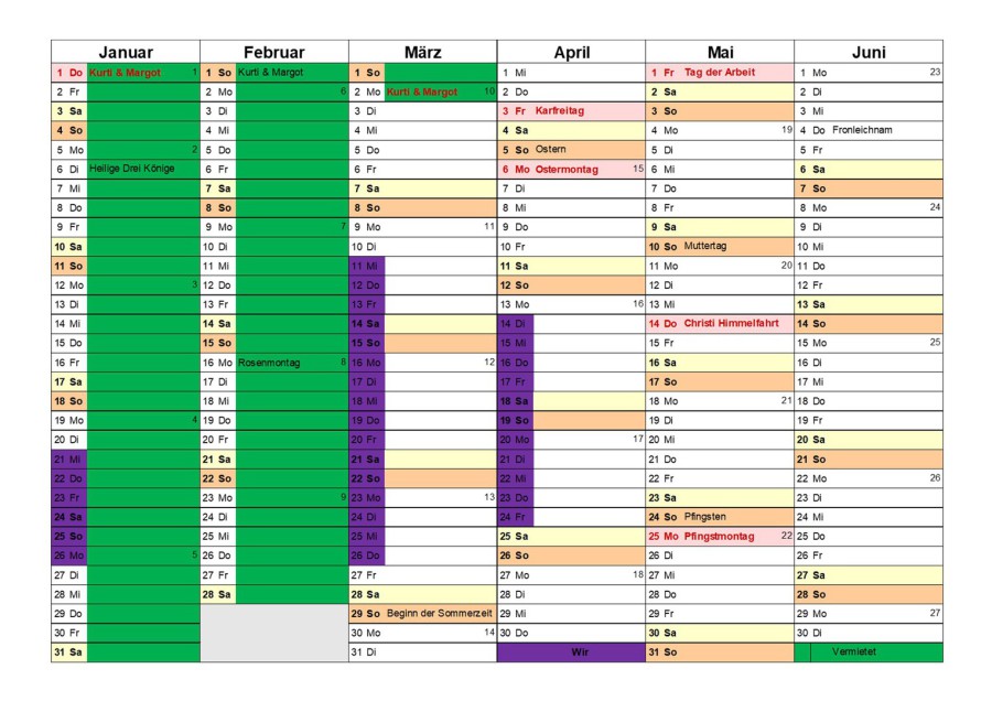 Kalender mit Belegungsüberischt